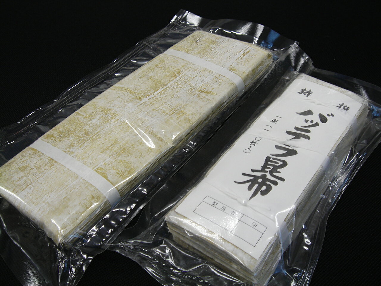 さばの押し寿司などに・・・バッテラ(白板)昆布 (小サイズ)100枚入価格: 2,940円レビュー評価: 5.0 レビュー数:1 白板昆布とは、おぼろ昆布を作る時に昆布の表裏両面を特殊な刃物で薄く削り、最後に残った昆布の芯の部分です。さば寿司の表面に乗せてバッテラ寿司などにご利用下さい。品名:バッテラ昆布(白板昆布)製造地:福井県産サイズ:小(約5cm×14cm)内容量:100枚入保存方法:お手元に届きましたら封をしっかりと冷蔵庫で保存下さい。白板昆布とは、おぼろ昆布を作る時に昆布の表裏両面を特殊な刃物で薄く削り、最後に残った昆布の芯の部分です。さば寿司の表面に乗せてバッテラ寿司などにご利用下さい。当店では3種類のサイズのバッテラ昆布をご用意していますので、用途に合わせてお好みのサイズをお選び下さいませ。 |